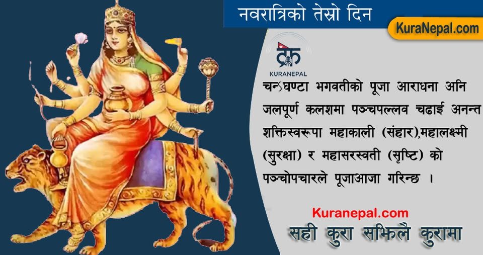 नवरात्र तेस्रो दिन: चन्द्रघण्टा देवीको आराधनामा शक्ति र शान्तिको साधना